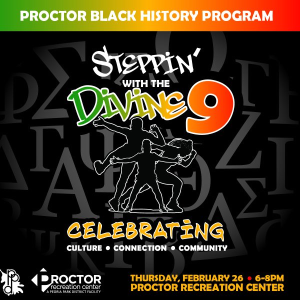 Help Proctor Recreation Center Celebrate Black History Month with their program honoring the Divine Nine, the nine historically Black Greek-letter organizations that have shaped leadership, culture, service, and excellence for over a century.
